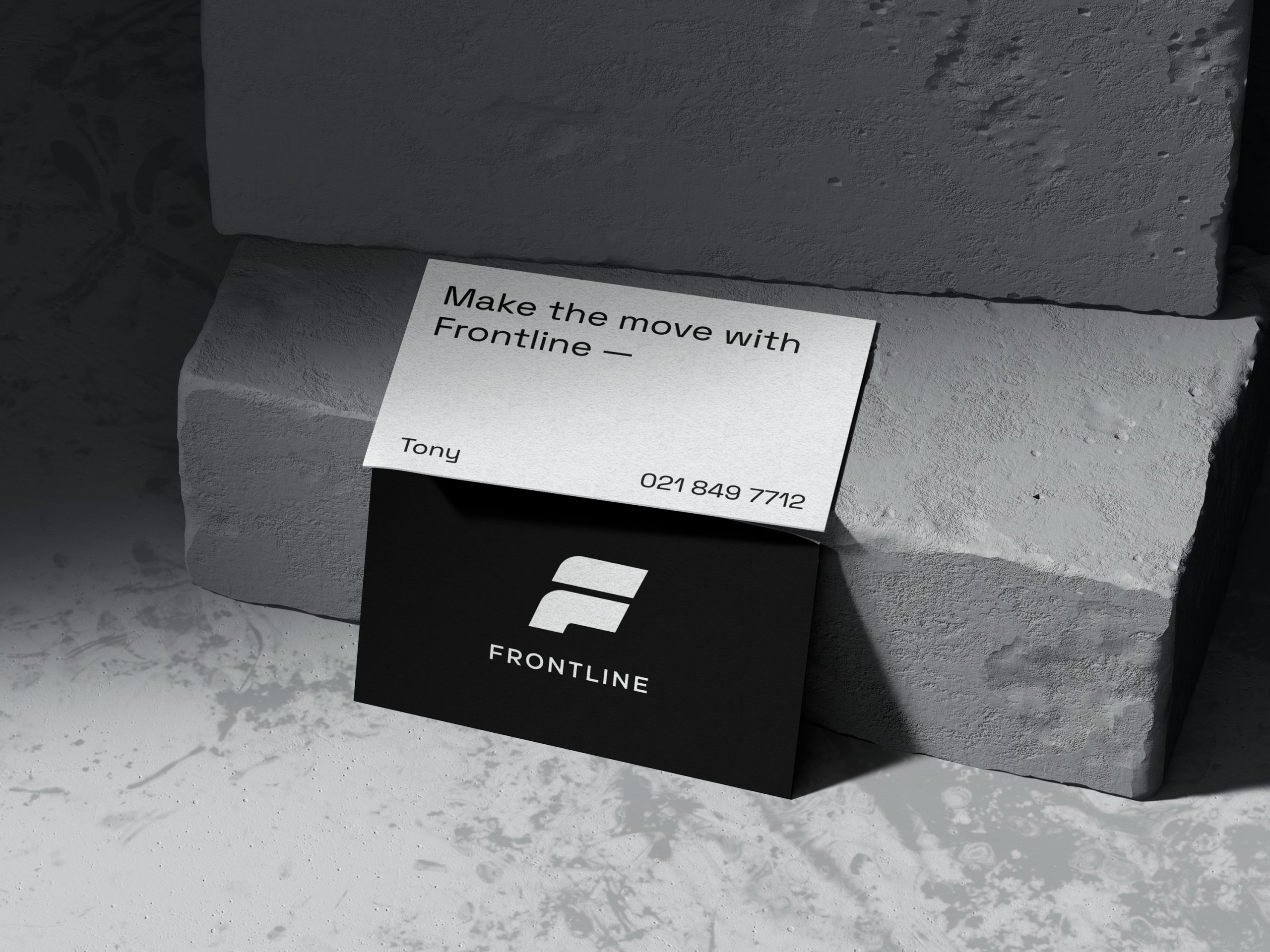 Frontline is a logistics company specialising in relocation services. The logo and materials were designed to reflect a modern, professional aesthetic, reinforcing trust and reliability.